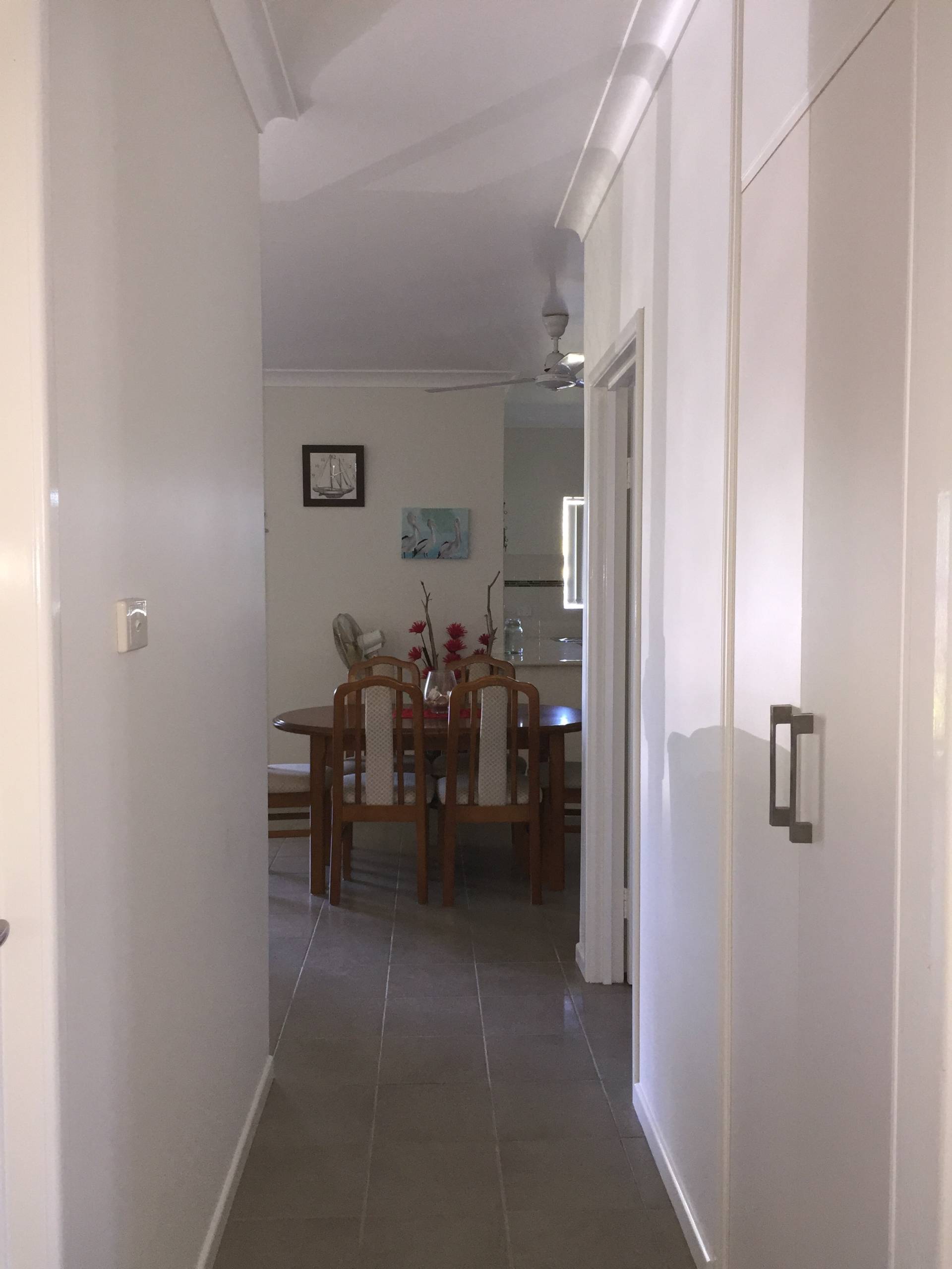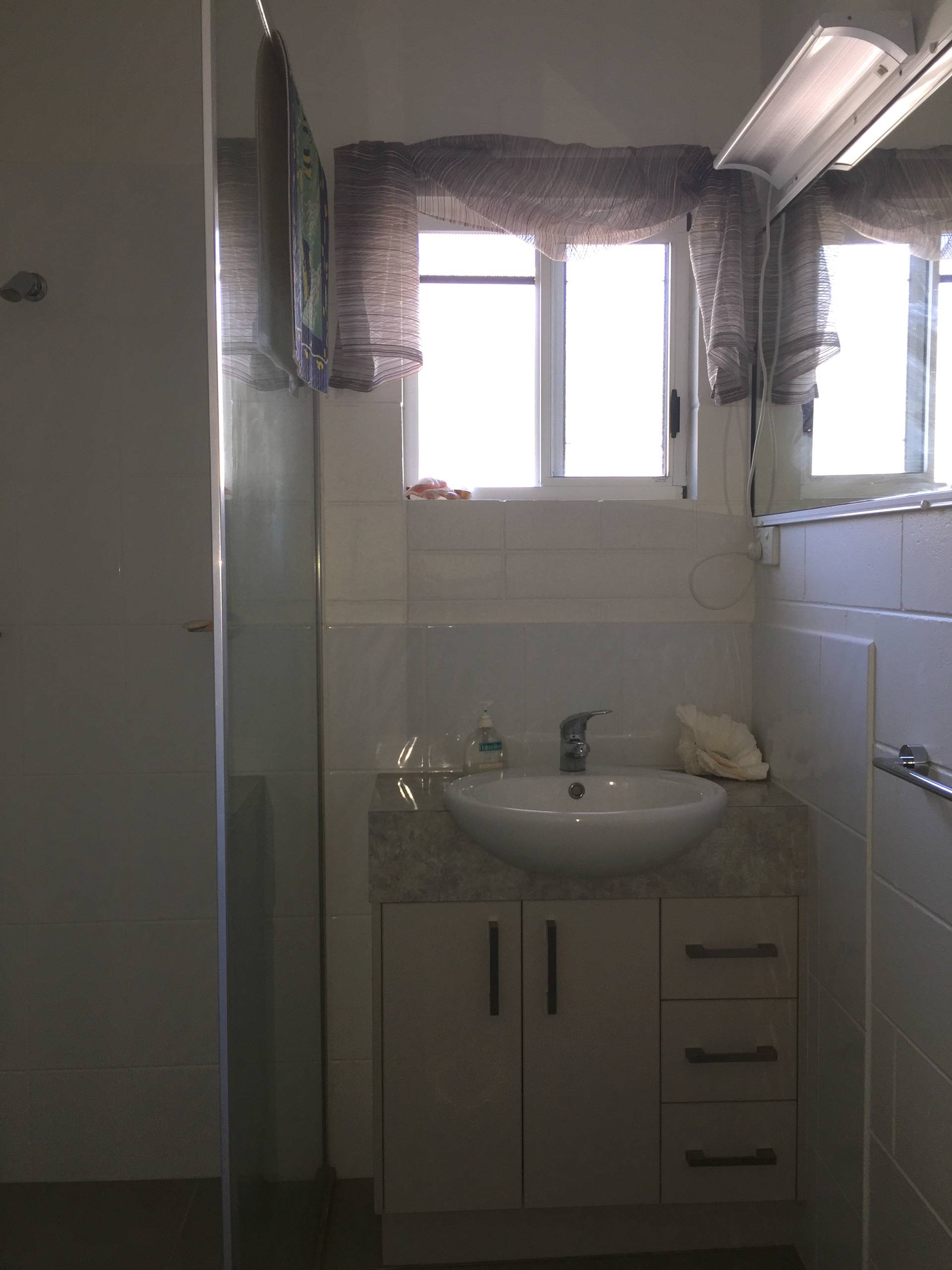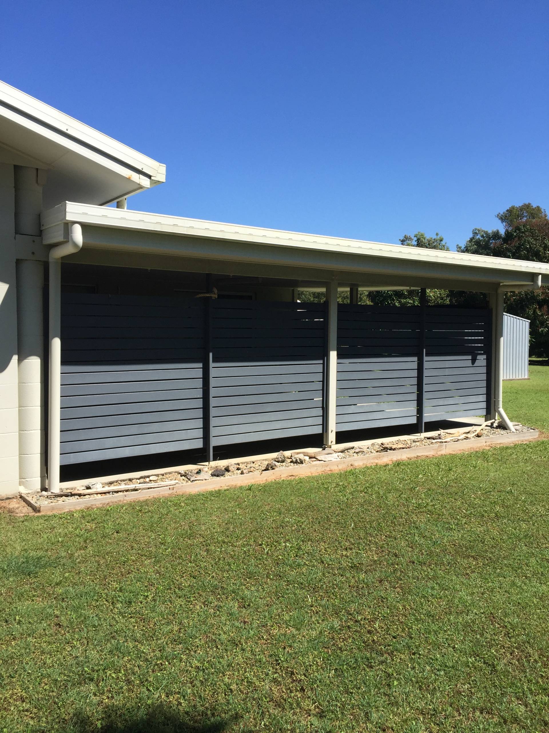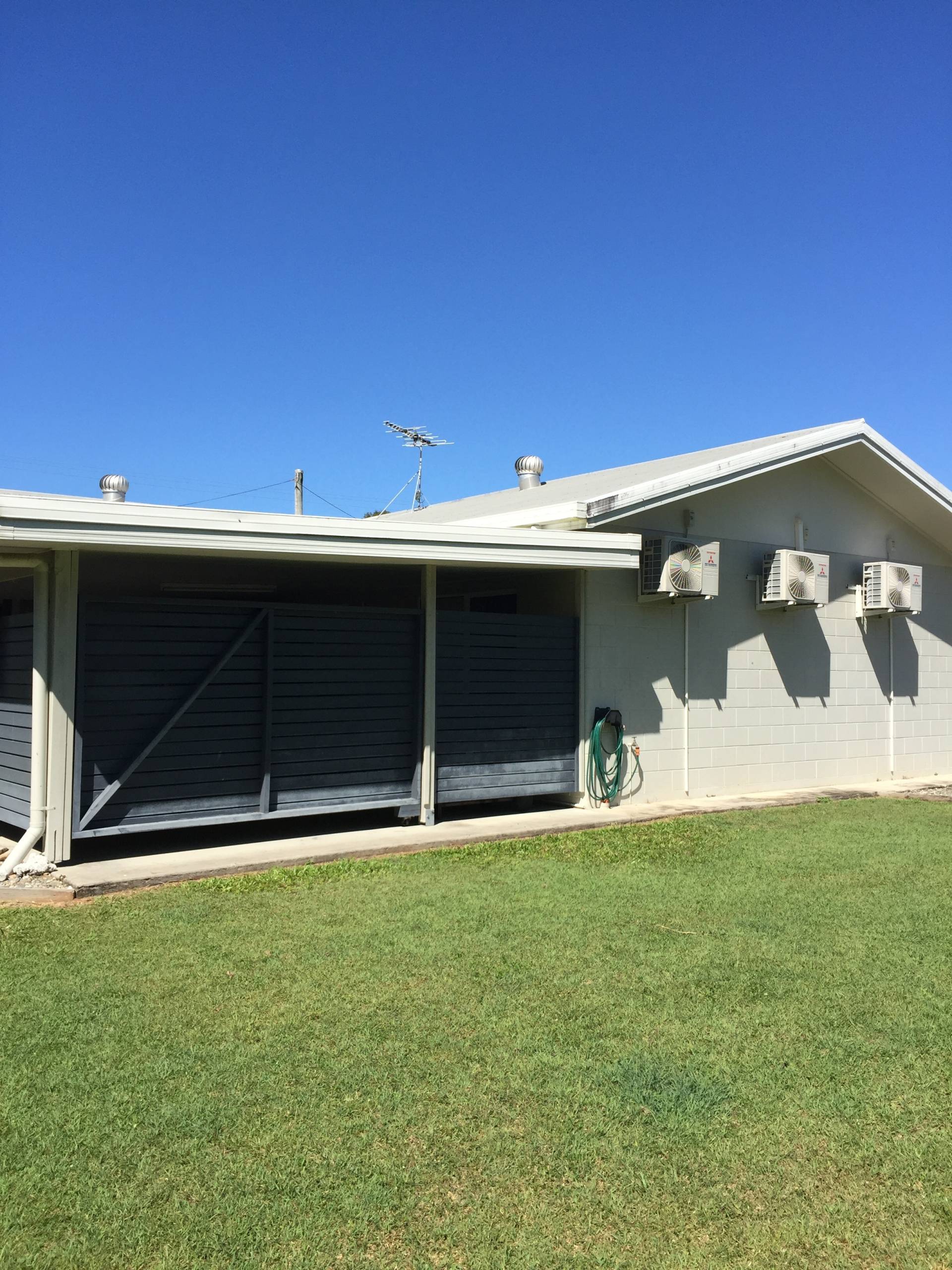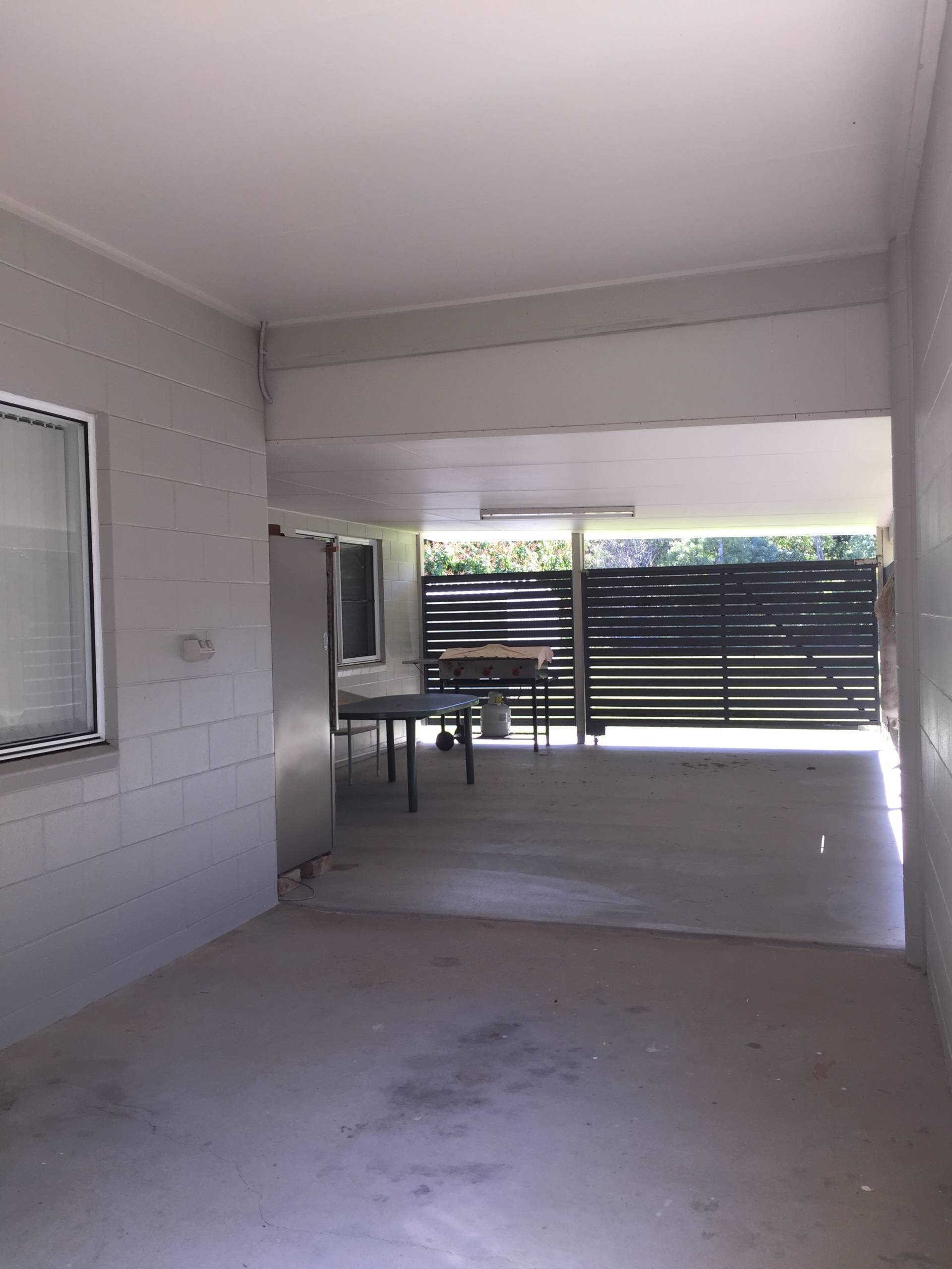 It has a carport at the front and adds to the undercover entertainment area adjoining it to allow lots of space and if you lift the roller door the breeze will blow through as well plus if you look over the road you can see the island in the distance.