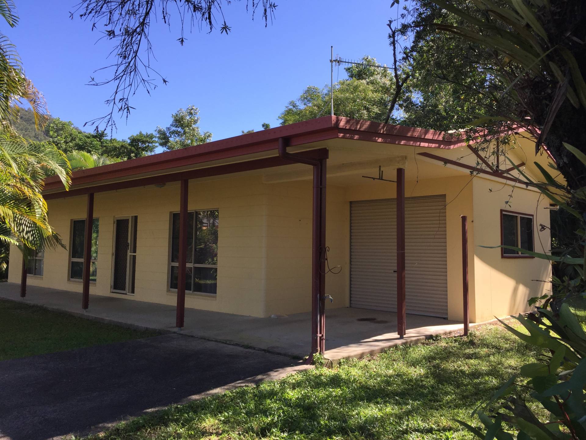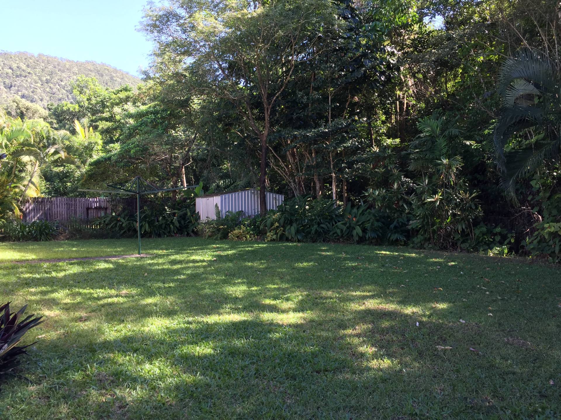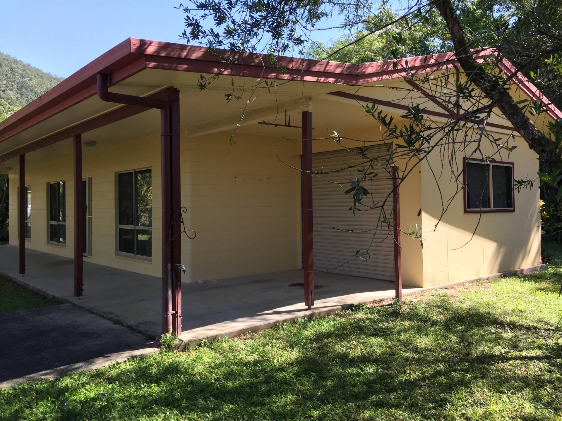 There is a lockable garage as well as a carport off the long front patio. The yard is  fenced with a garden shed at the back and a small stream flows past down from the mountain.