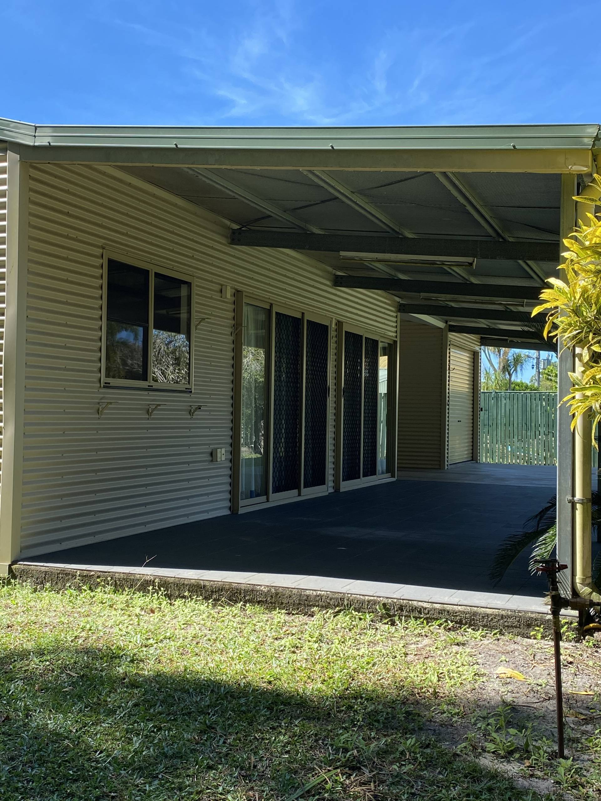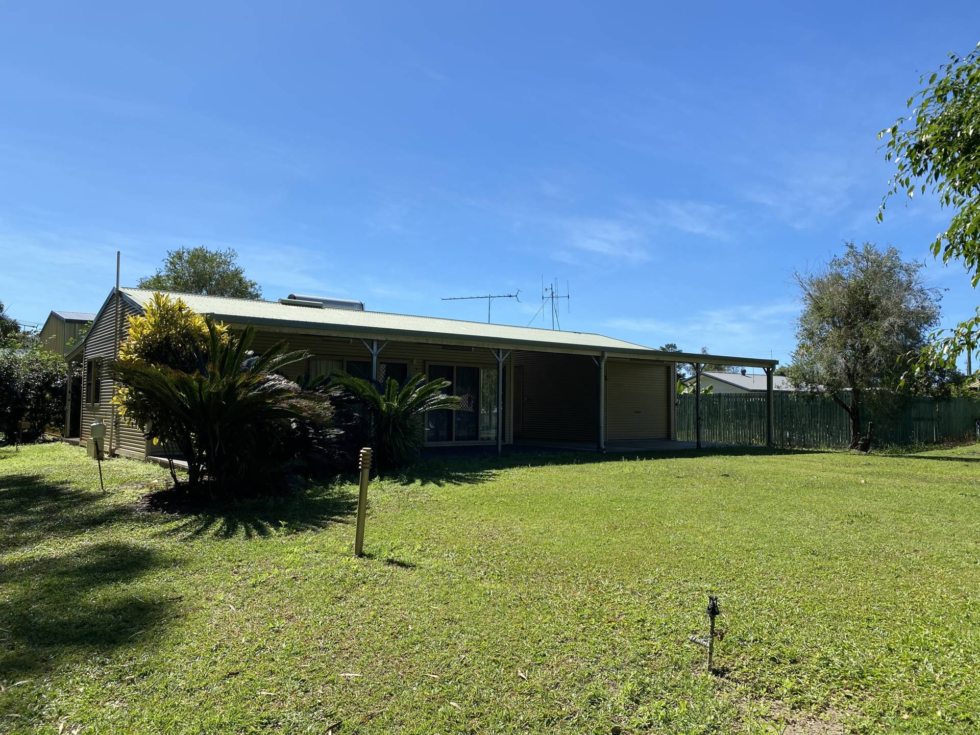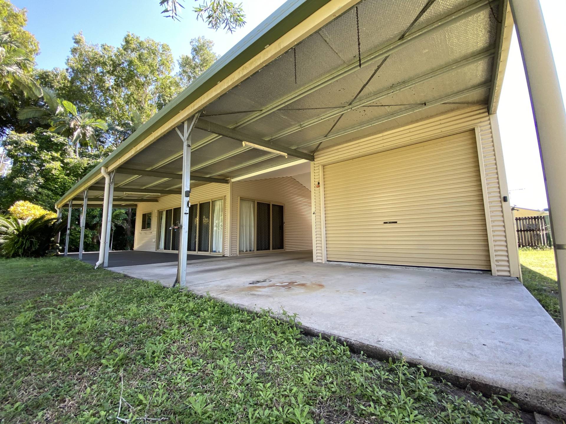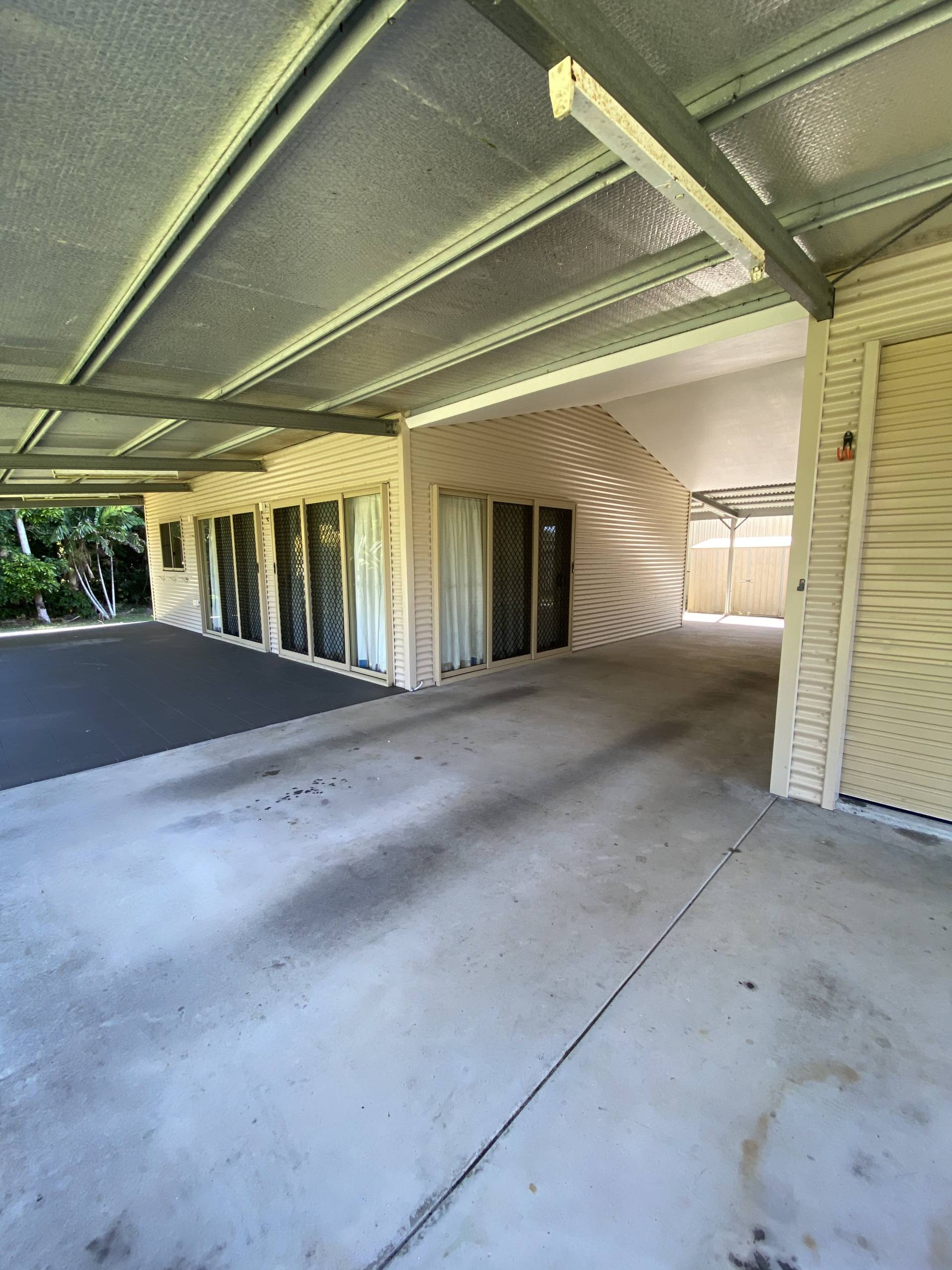 In the front is a Large, high Carport for storage of your boat or caravan.