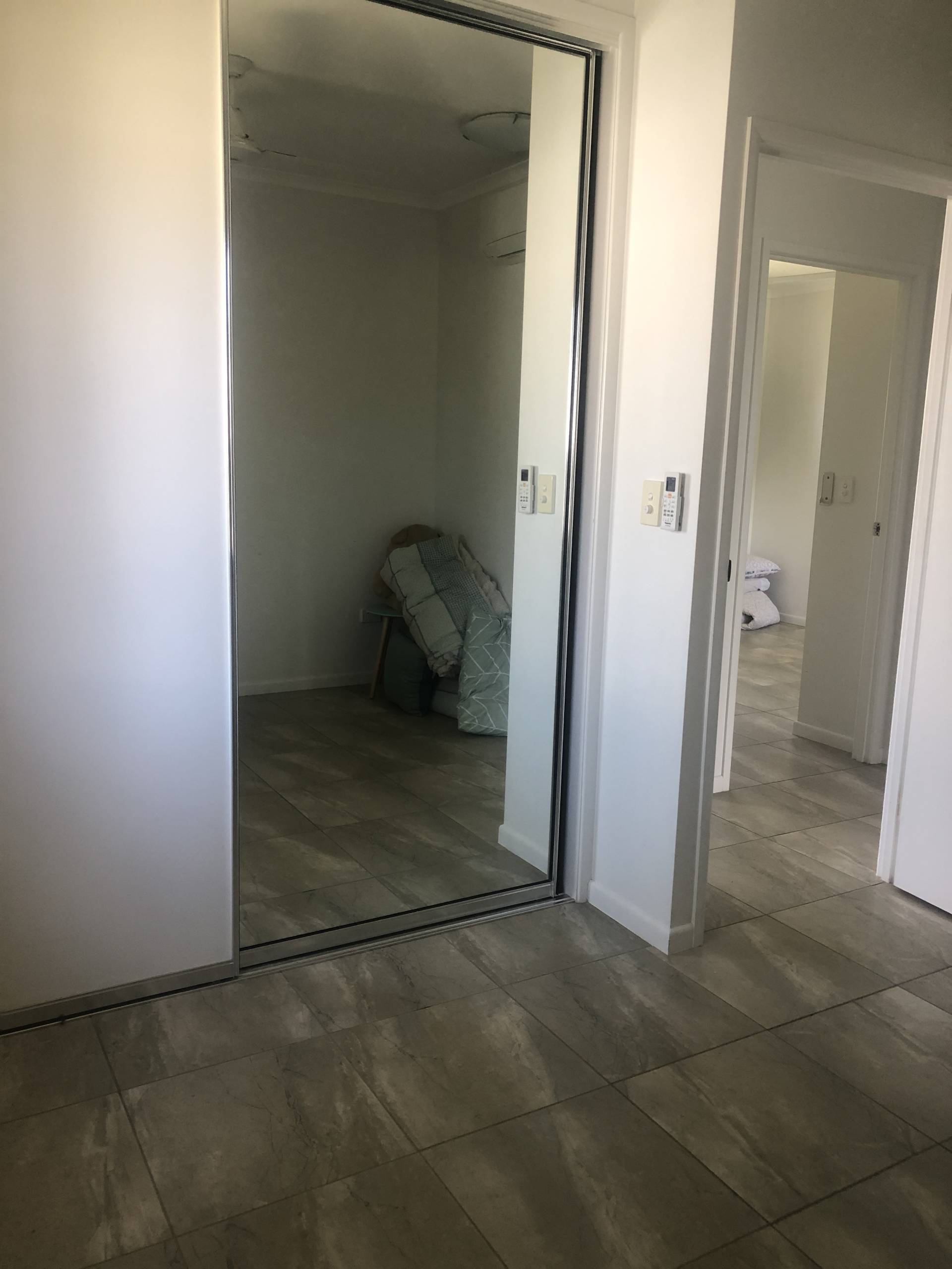 The property has a large open plan living, dining and kitchen area. Tiles throughout and ensuite in the main bedroom.