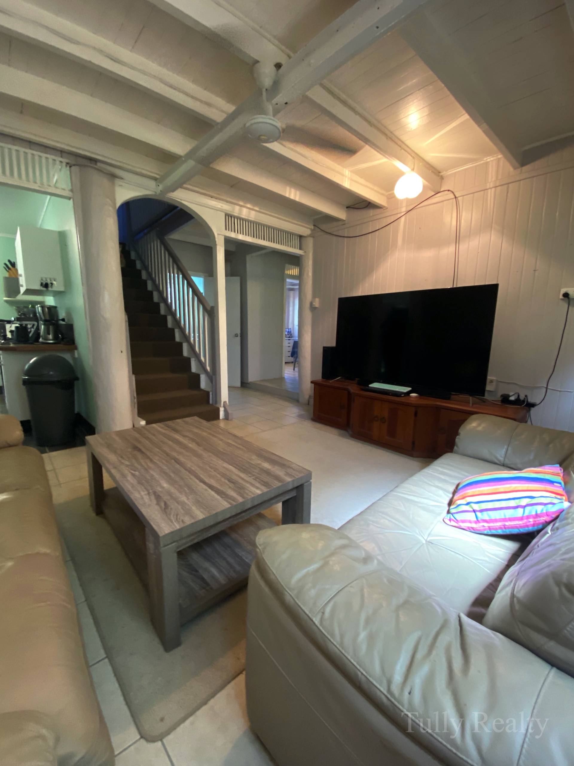 This home resides on 1,470 m2 block with access via the front and back of the property. It's location is ideal, being only a 5 min walk to Tully CBD and across the road from the local primary school. Featuring 3 / 4 bedrooms, 2 bathrooms this home would be perfect for a family. This home includes two sunrooms as well as a solid timber bar area perfect for entertaining guests or enjoying the breeze relaxing.  All the plumbing is read to go if you are wanting to make a kitchenette upstairs and also a second laundry. This property can easily be transformed into a set of units. There is plenty of parking room out the back with a 3 bay parking carport and a shed off to the side.