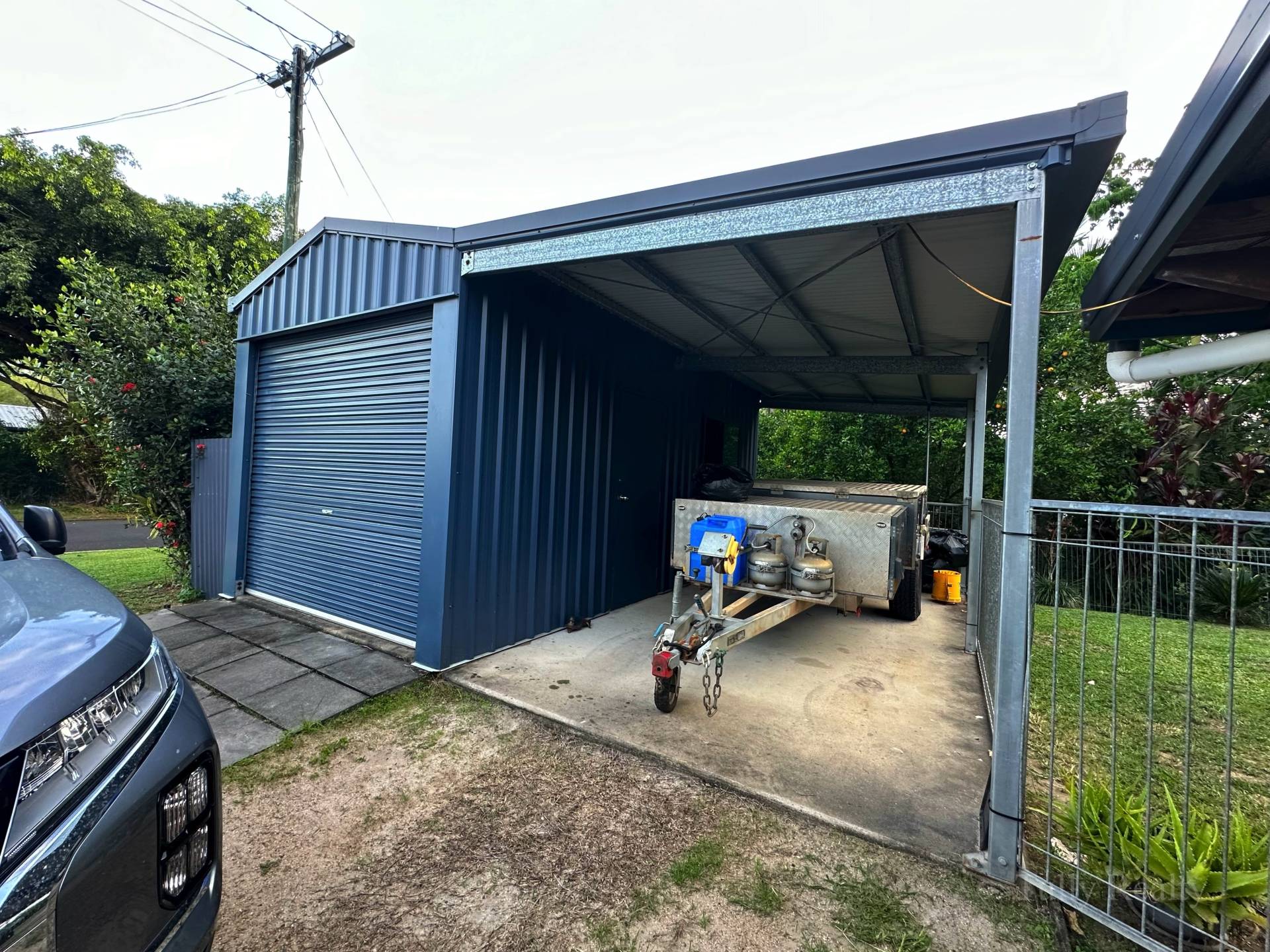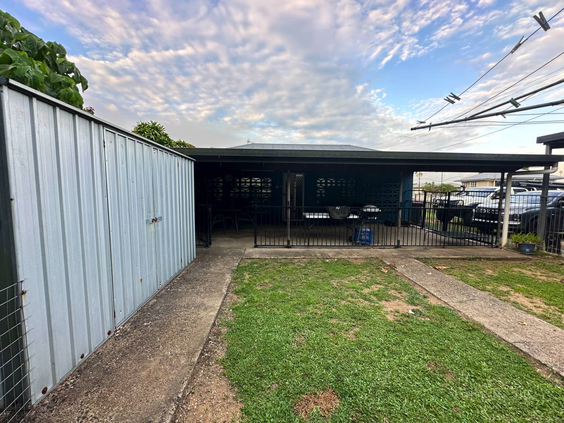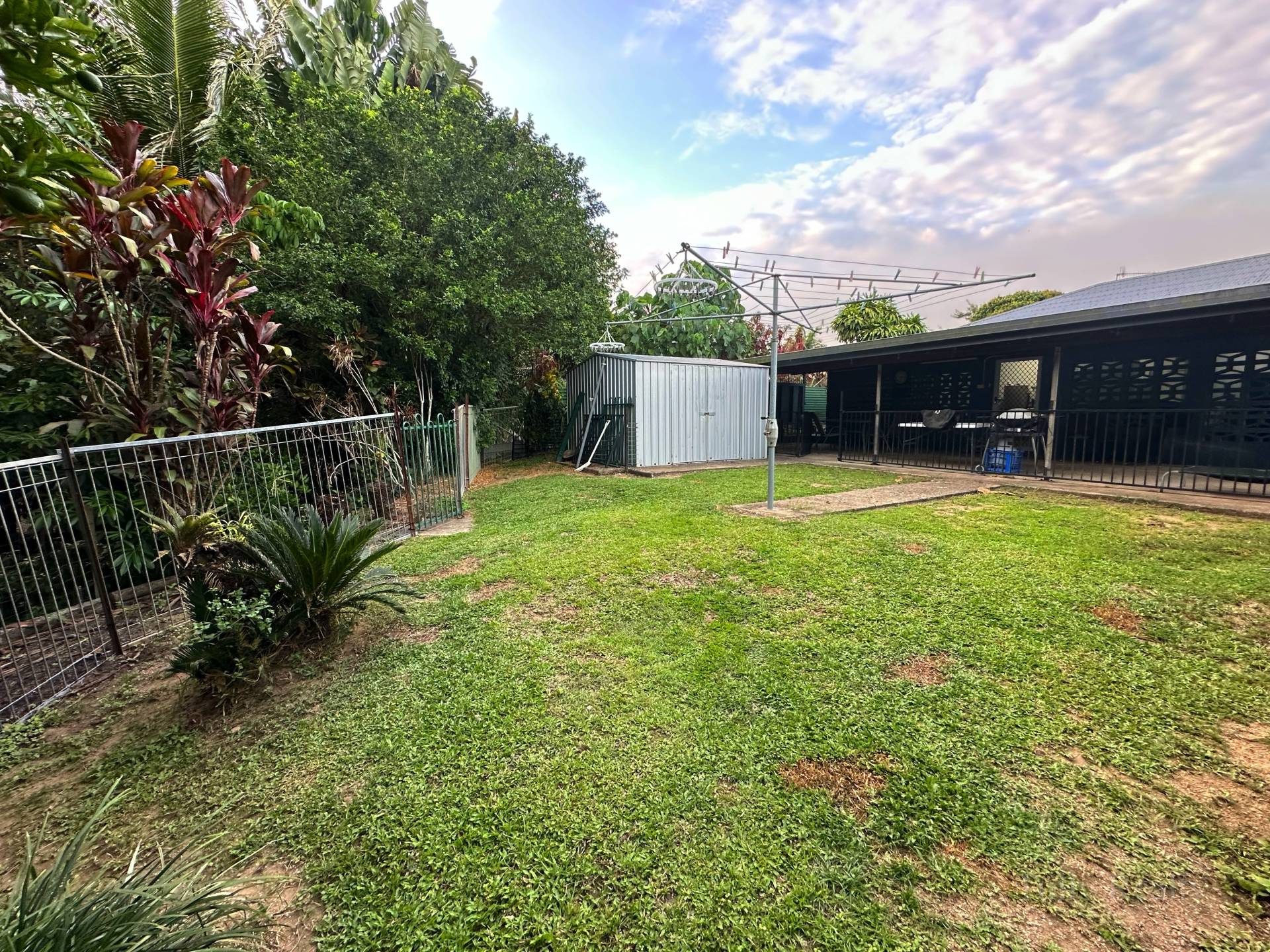 The property is fully fenced at the front and has 2 Sheds in the backyard, one is a garden shed and the second is a larger shed with an awning.