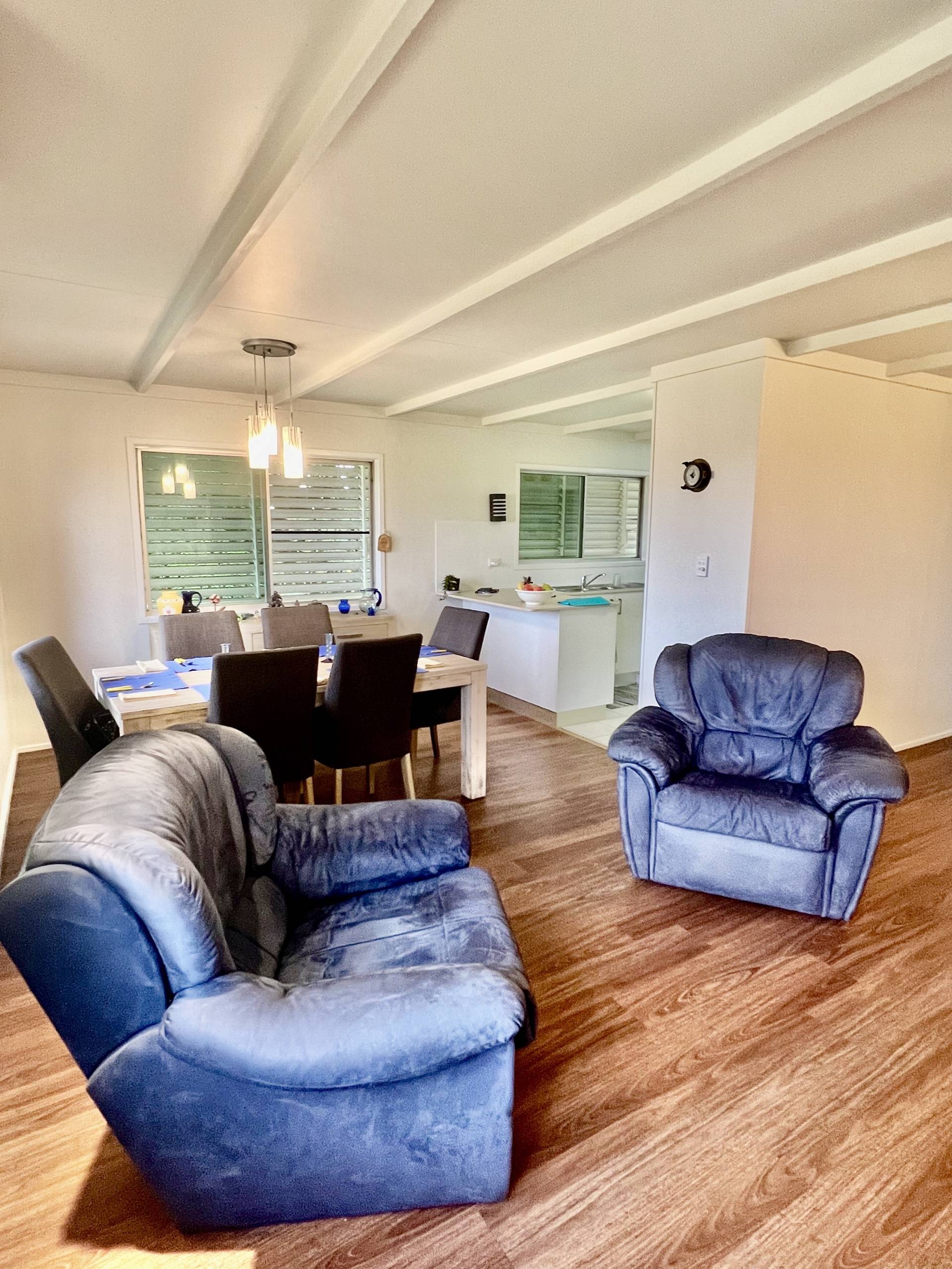 • Spacious Layout: Open plan kitchen, living, and dining area with tiles and vinyl planking floors and split system air conditioning for year-round comfort.
