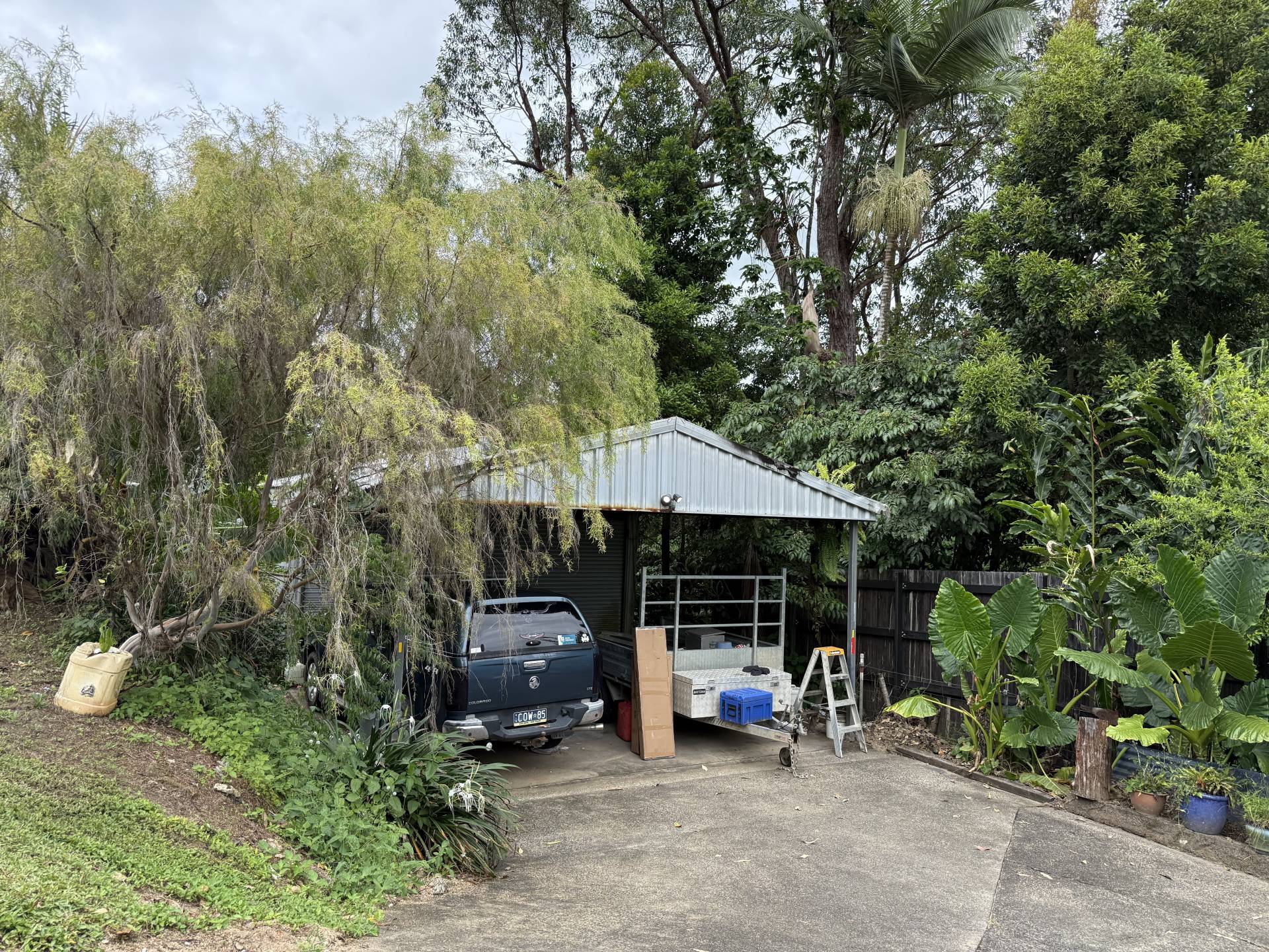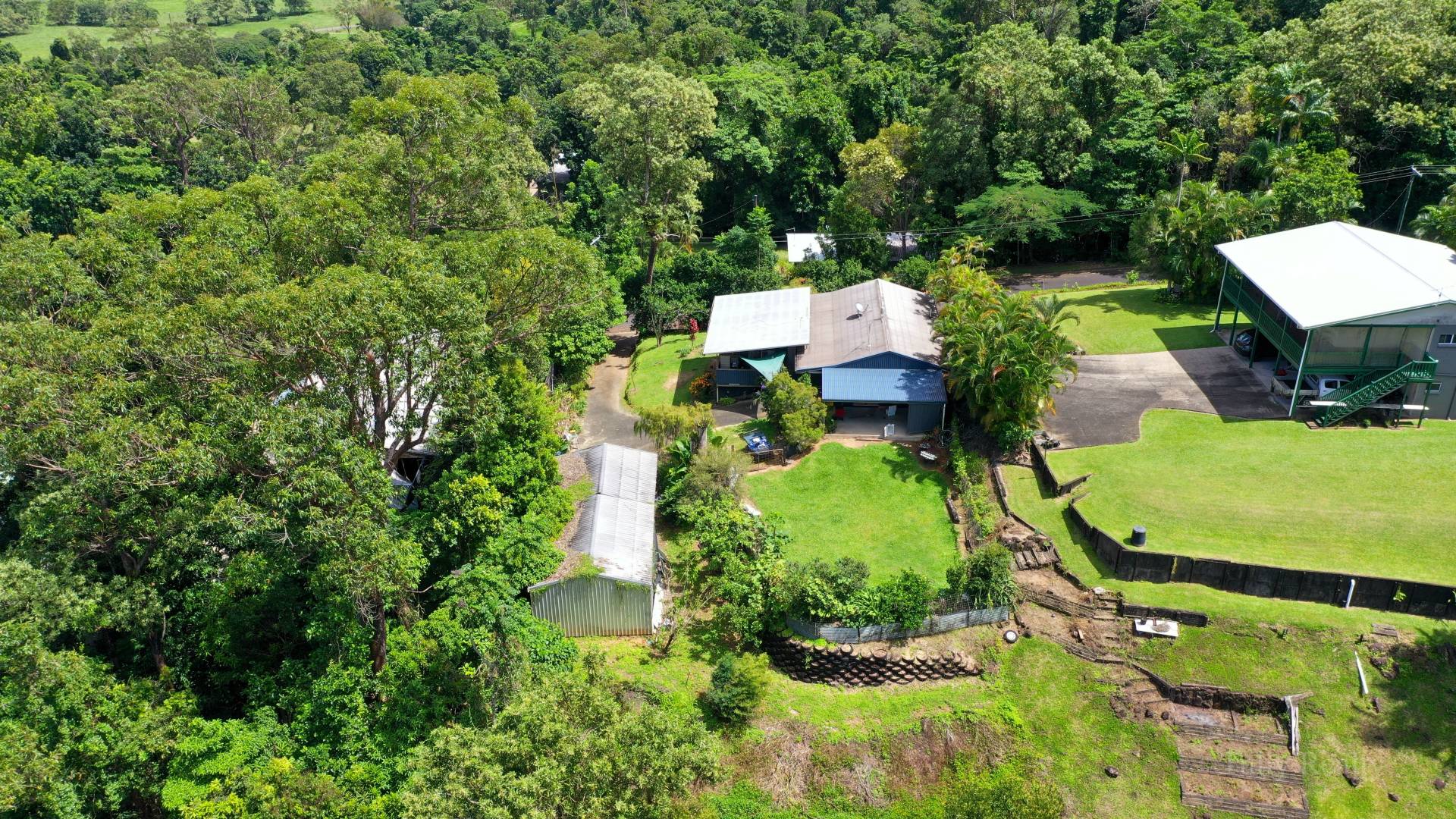 The central  bathroom has been refurbished with modern tiles and fittings. While the modern kitchen boasts a beautiful central polished solid timber bench top. Leading out of the kitchen is the walk-through laundry which has pantry space as well. The flooring is vinyl panelling throughout the living area and vinyl flooring in the two bedrooms the whole house is fully air-conditioned with split systems. Through the timber doors on the same level is the fenced back yard with fruit trees and room to grow vegetables or keep your pets. On the lower level as you drive  in is a 2 bay shed with front extension allowing 4 car parks and plenty of storage. If you walk beside the shed down the balance of the block you'll find a small creek.