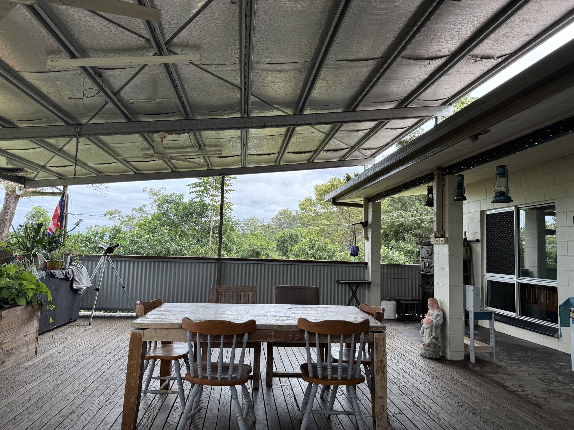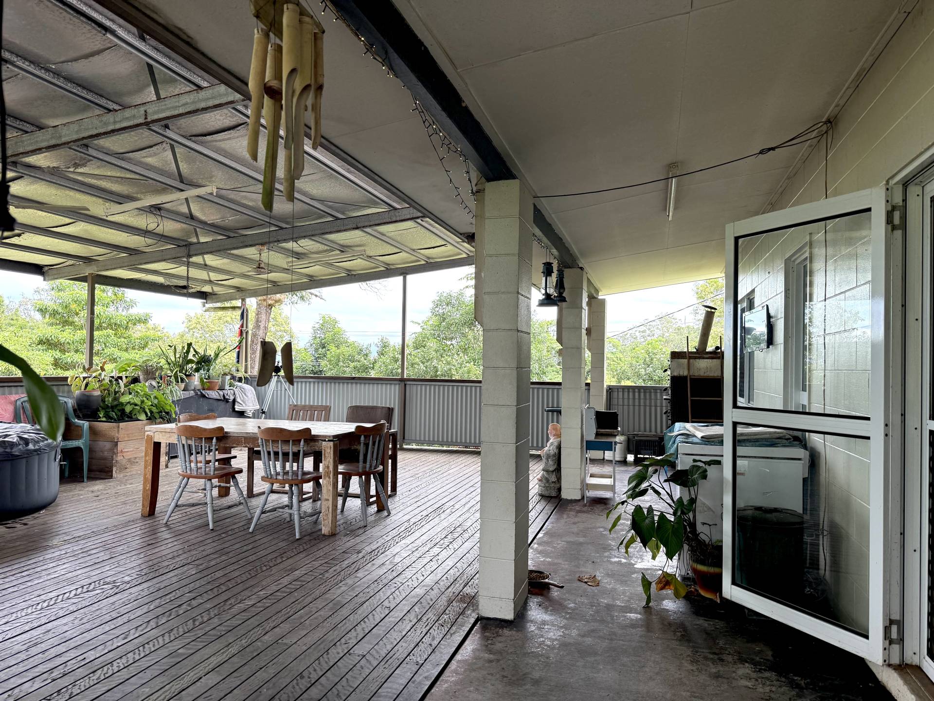 This is a two bed /one bath solid home complete with a huge timber deck for entertaining and allowing views overlooking cane fields and native trees to the south and west. When you enter this property you will feel space and airflow through this neat home from both the timber and lead glass french doors to the eastplus other aluminium doors opening onto the deck